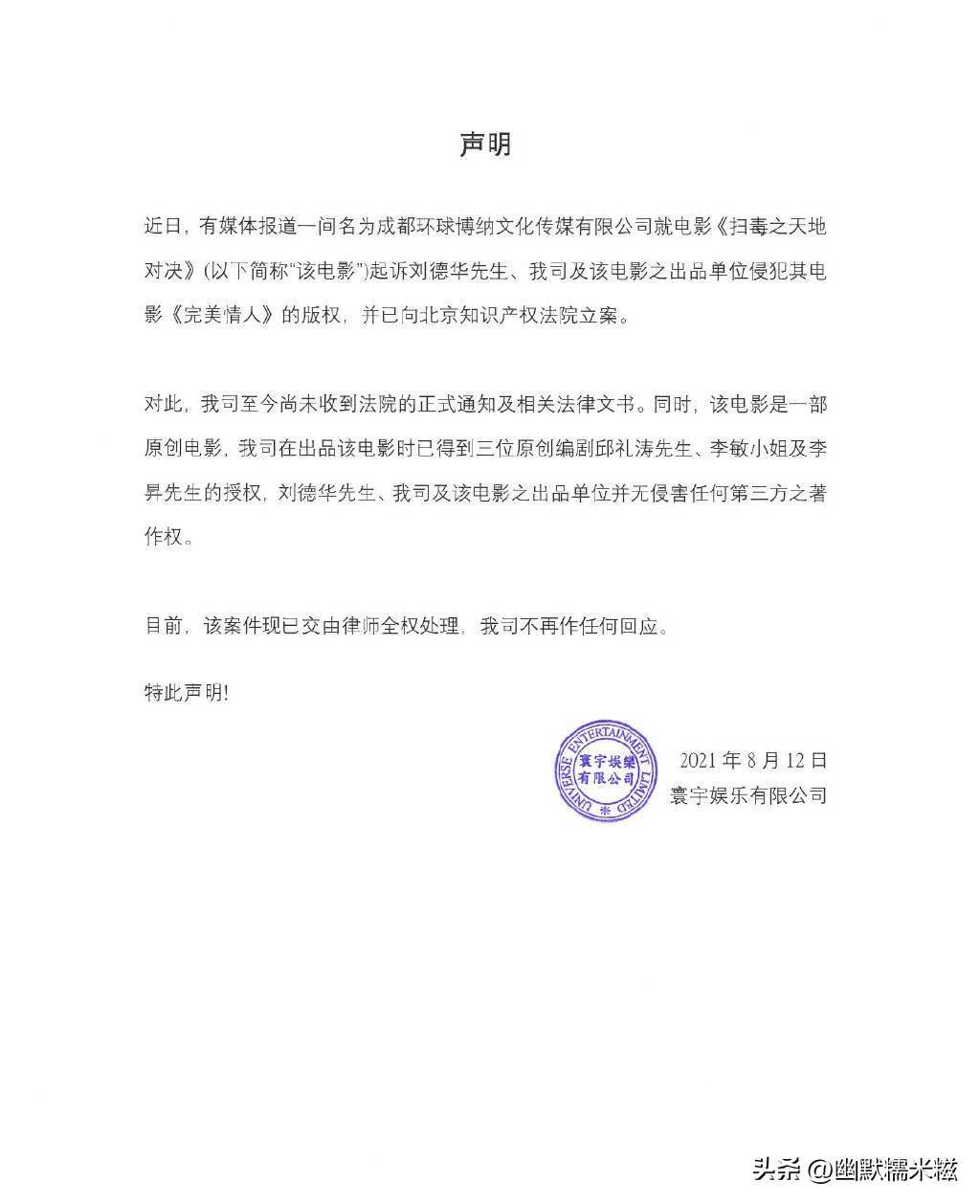 刘德华未出庭,由其高出授权讼师代理出庭。此外,刘德华方还质疑《完满情东说念主》的创作时辰是否早于《扫毒2》,并以为原告方莫得提供有用笔据。
